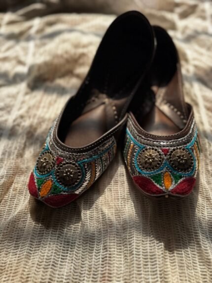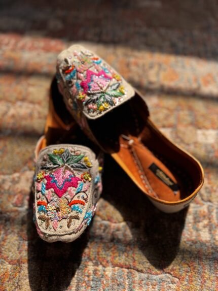 The Noor-E-Gul Jutti is a celebration of timeless craftsmanship and feminine elegance. Handcrafted with intricate pearl embellishments, delicate pastel beadwork, and fine thread detailing, this jutti radiates a soft festive charm. The cushioned leather insole ensures comfort while the rich craftsmanship makes it a standout piece for special occasions.