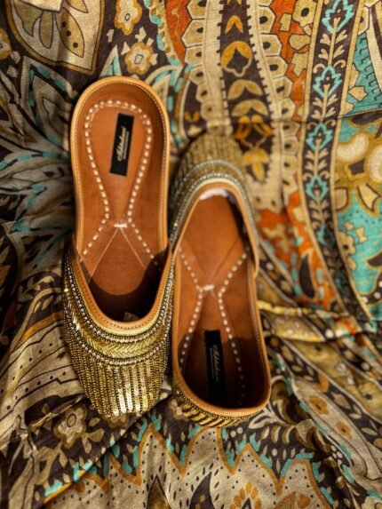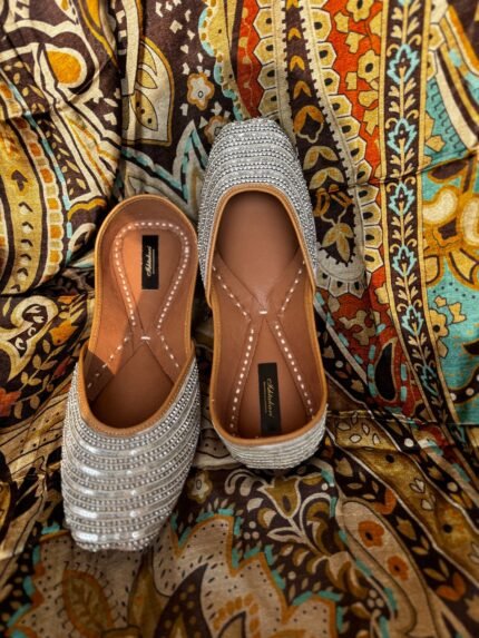 Designed to complement lehengas, shararas, sarees, and anarkalis, this jutti is ideal for brides, bridesmaids, and festive wardrobes. A perfect blend of tradition, luxury, and comfort—crafted to shine with every step.